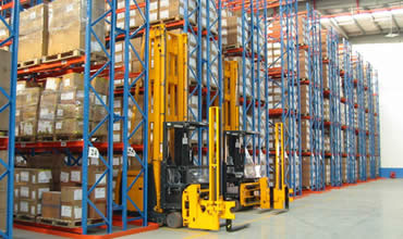 此類(lèi)倉(cāng)庫(kù)中,低、高位倉(cāng)庫(kù)大多用前移式電瓶叉車(chē)、平衡重電瓶叉車(chē)、三向叉車(chē)進(jìn)行存取作業(yè),貨架較矮時(shí)也可用電動(dòng)堆高機(jī),超高位倉(cāng)庫(kù)用堆垛機(jī)進(jìn)行存取作